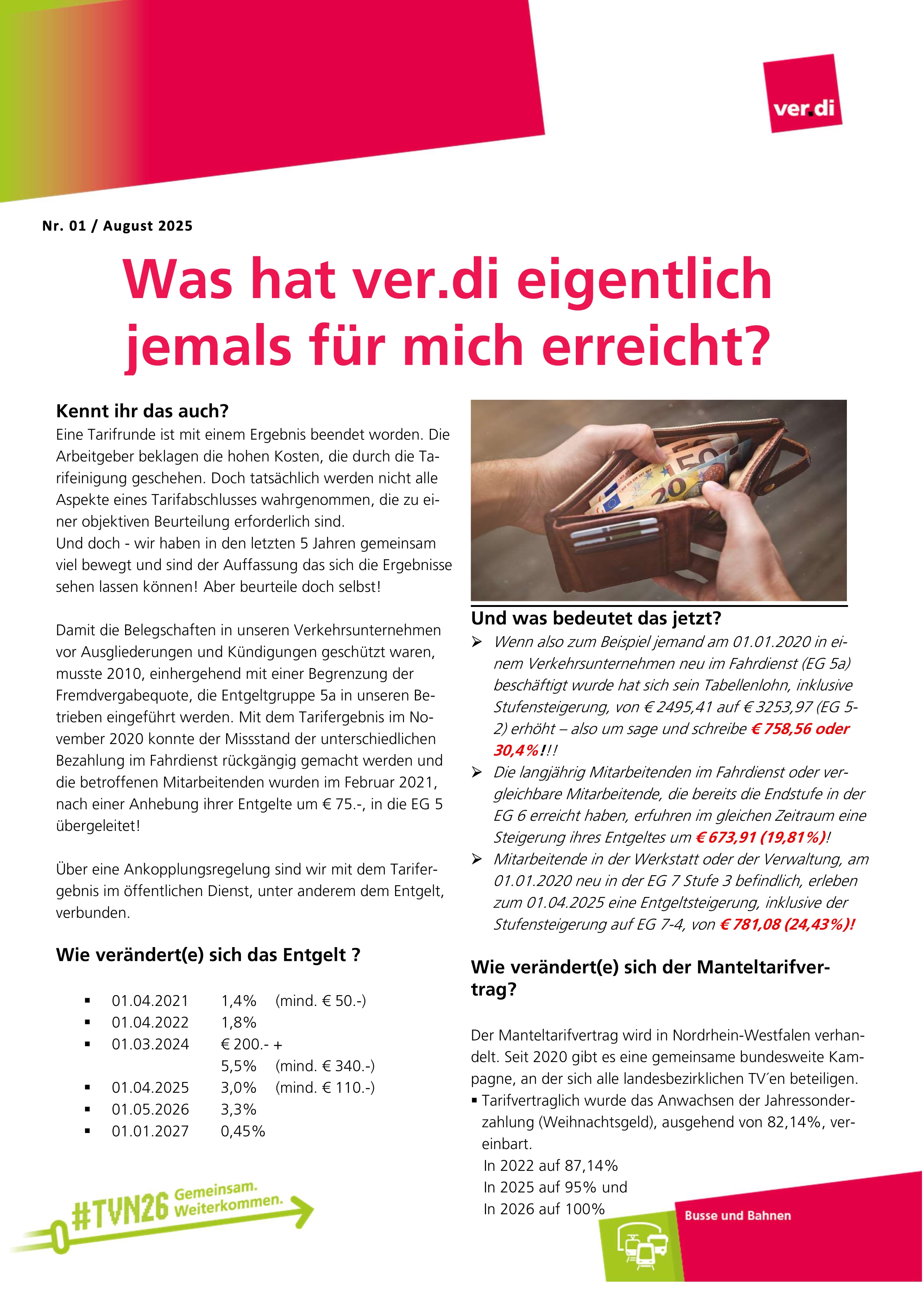Tarifeinigung im kommunalen Nahverkehr in NRW!